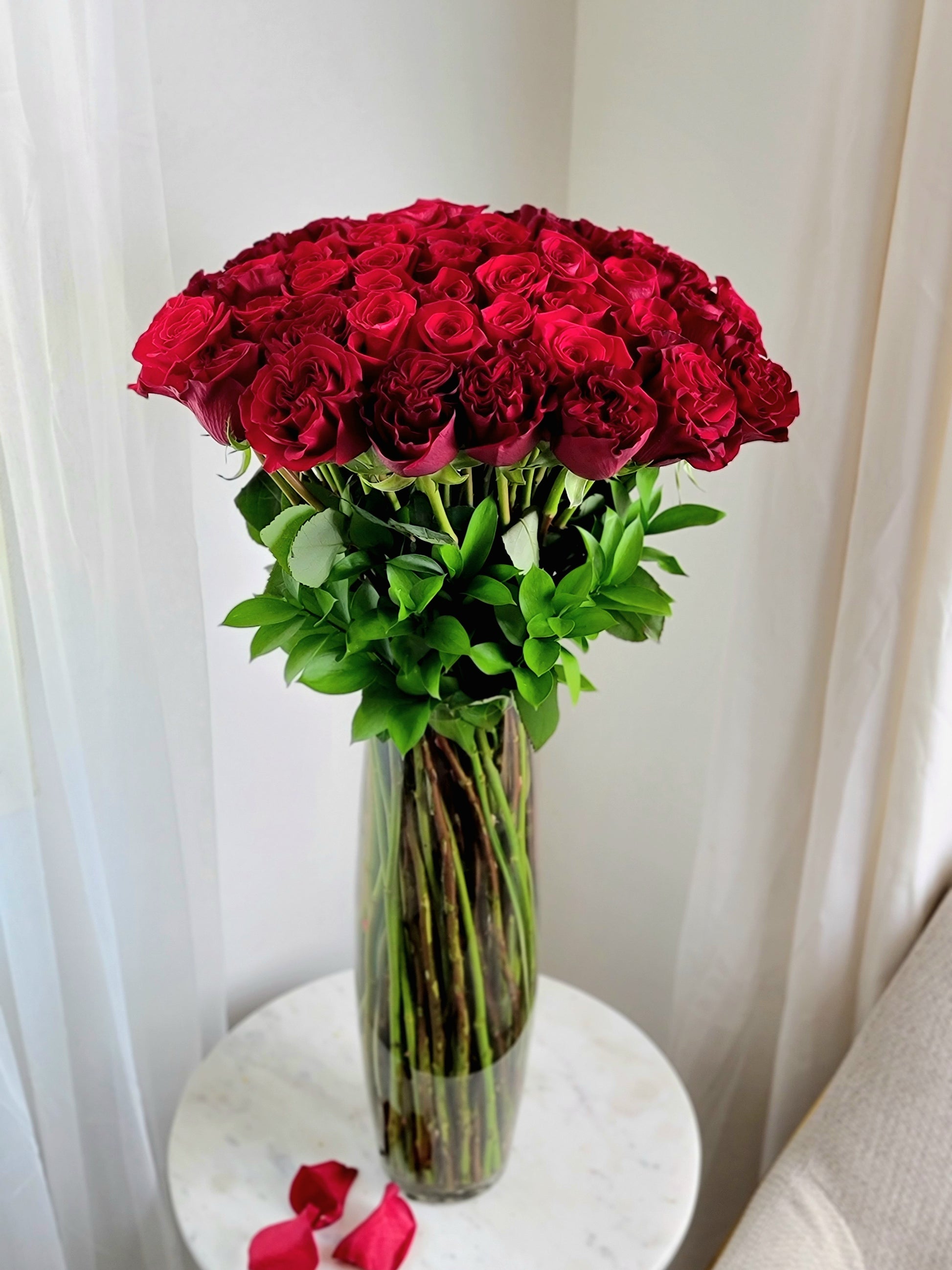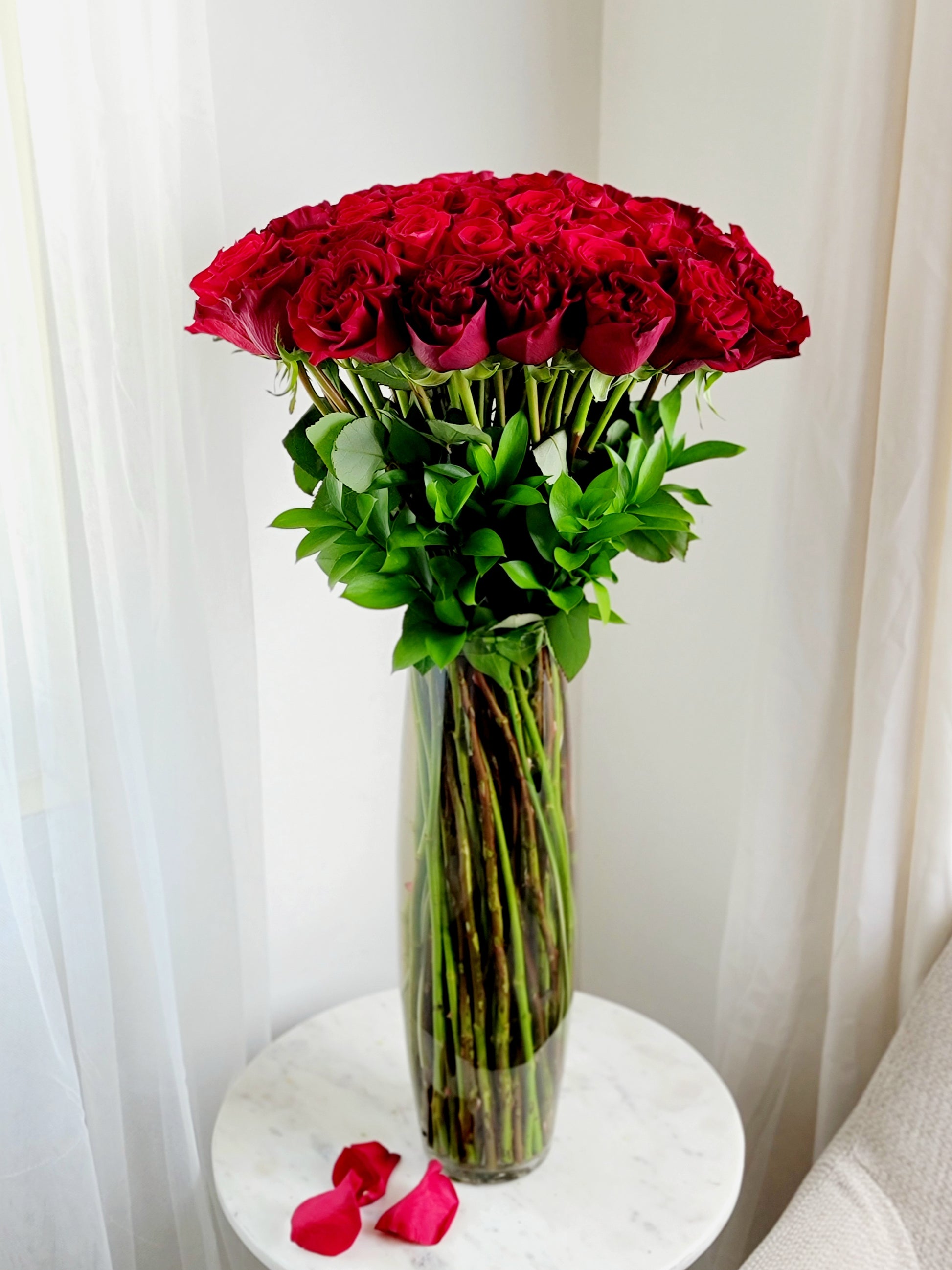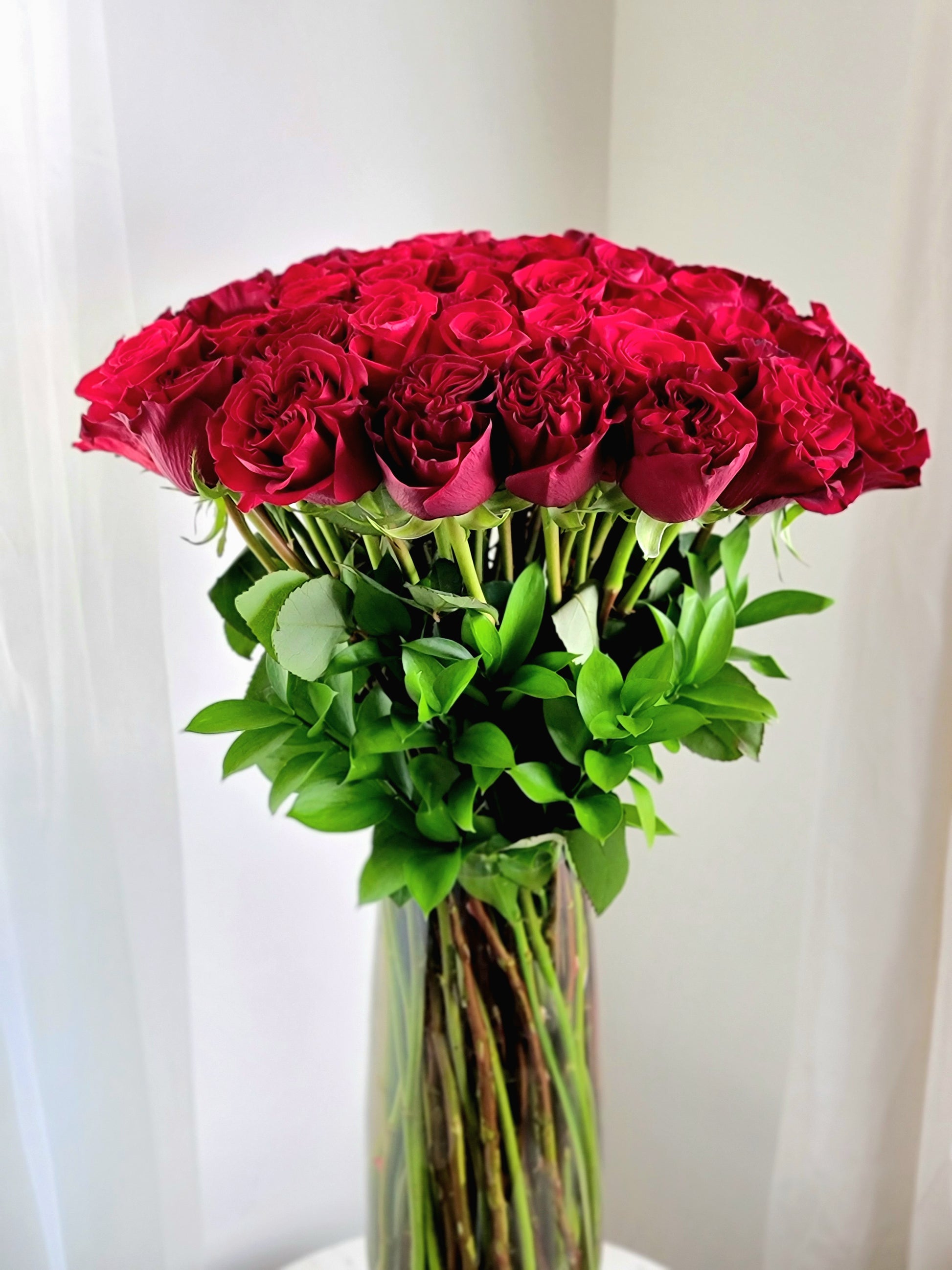 50 fresh roses long and graceful stems