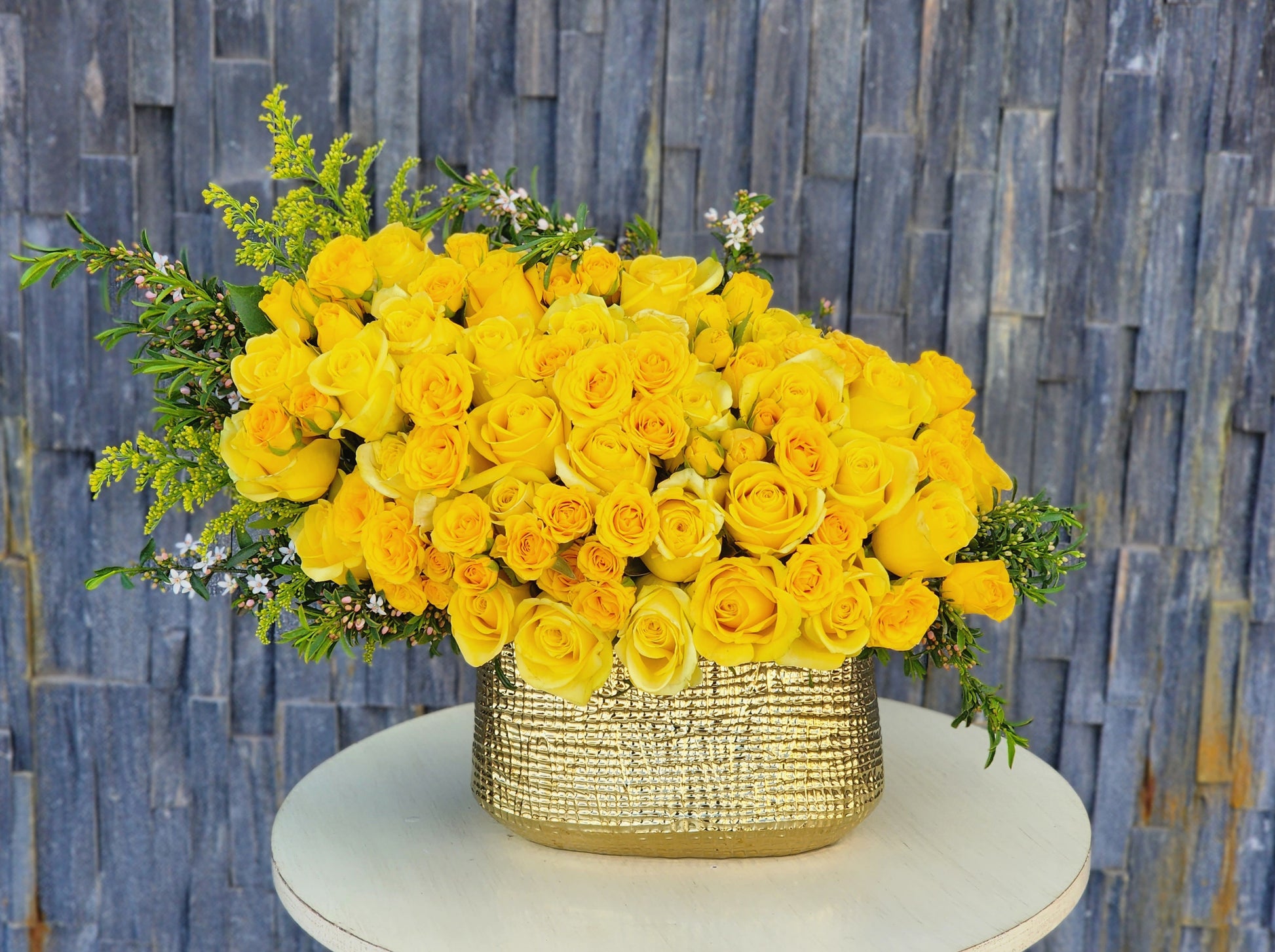 endless optimism. Compositions in a golden vase