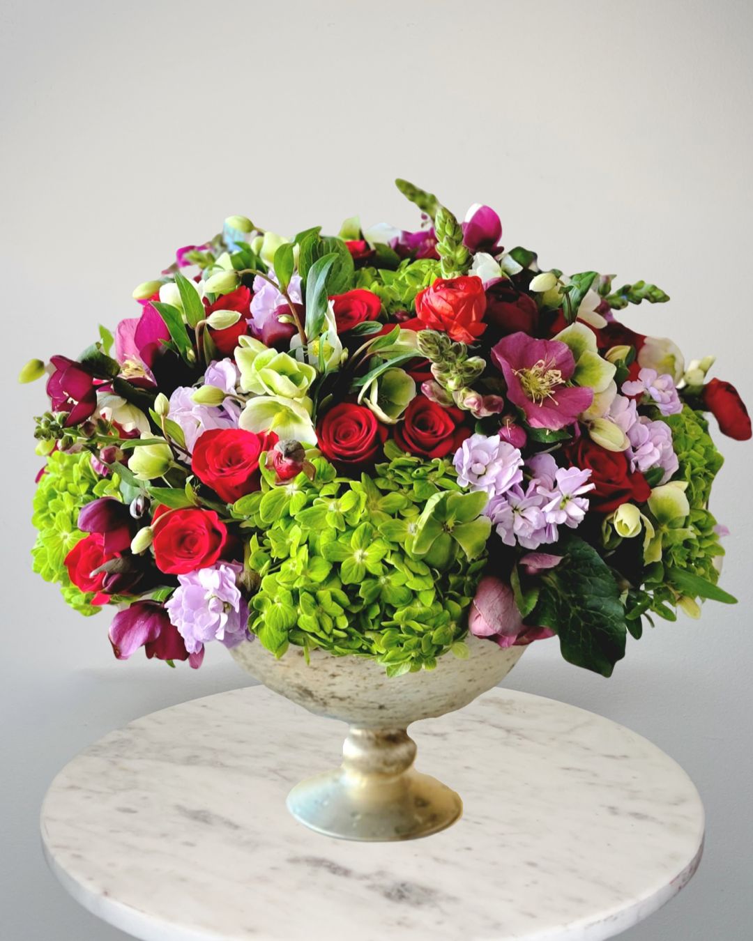 An arrangement in burgundy and lavender shades stands out for its depth of color. Such a composition is suitable not only for a woman, but also for a man. It is also appropriate to give it to a partner, as it has a special restraint, but it is also suitable as a gift for a loved one who loves deep shades.