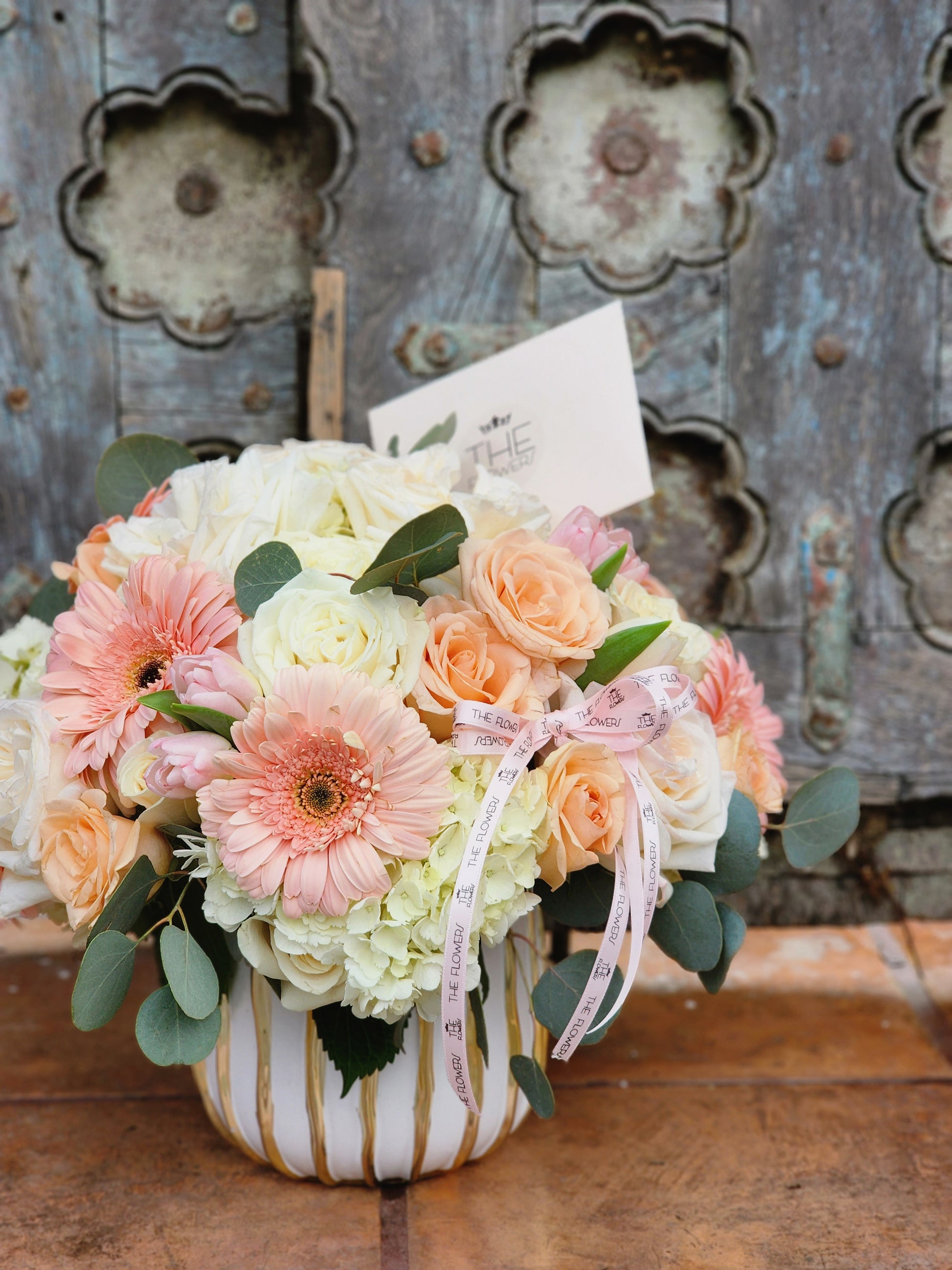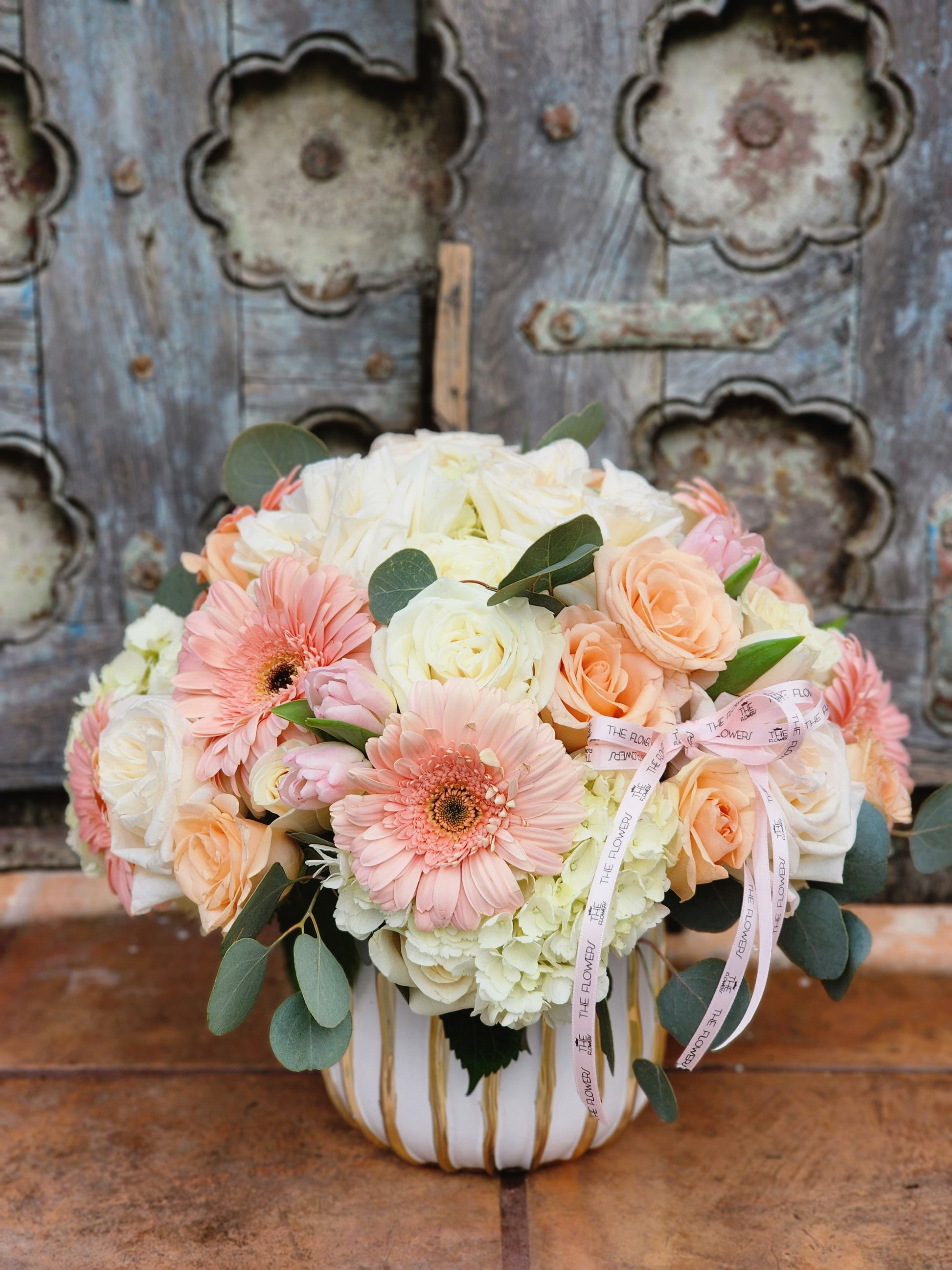 Garden rose has a rich delicate aroma. A cute bouquet of pink peach roses is perfect for a gift to anyone and in any situation.