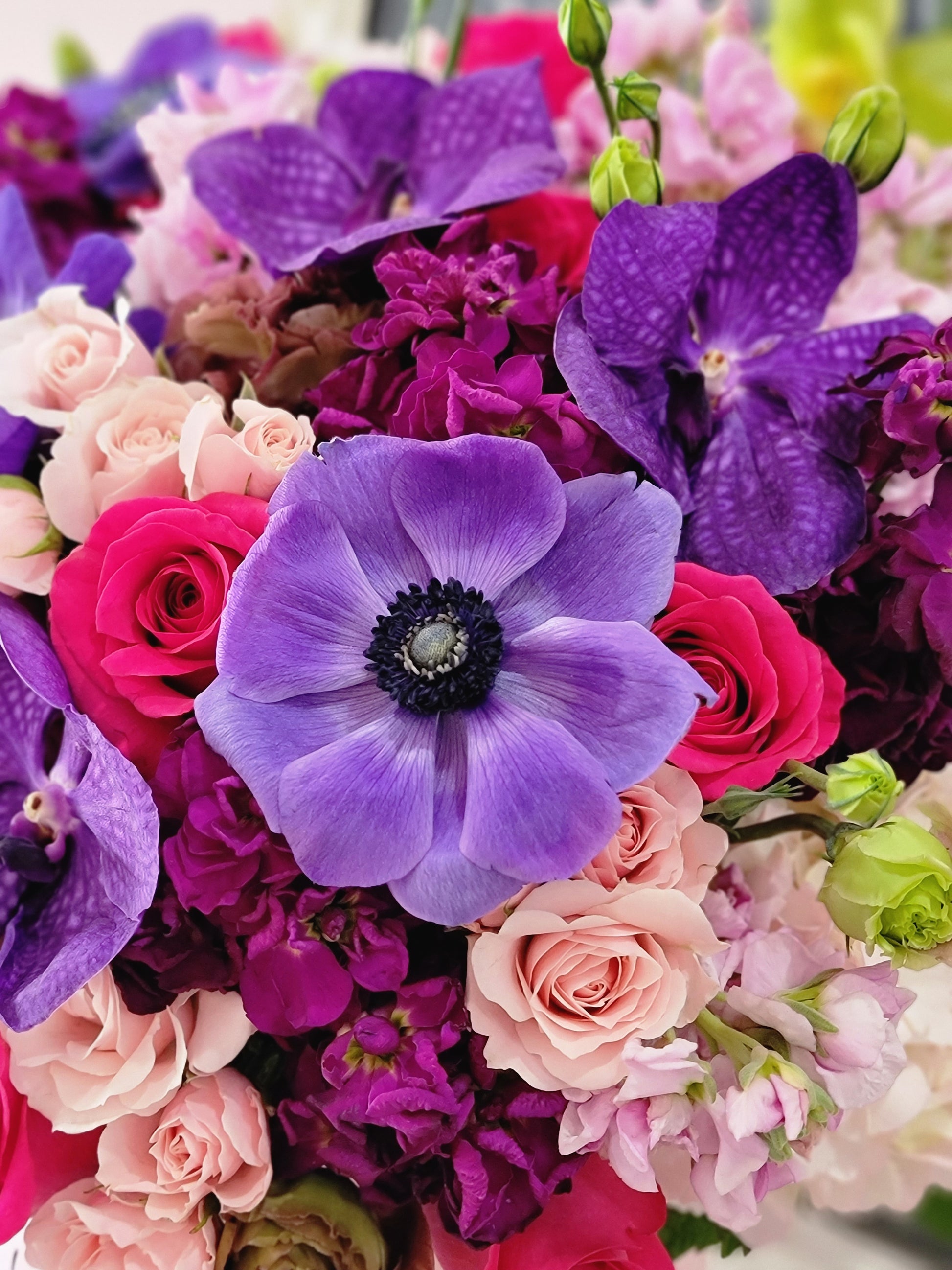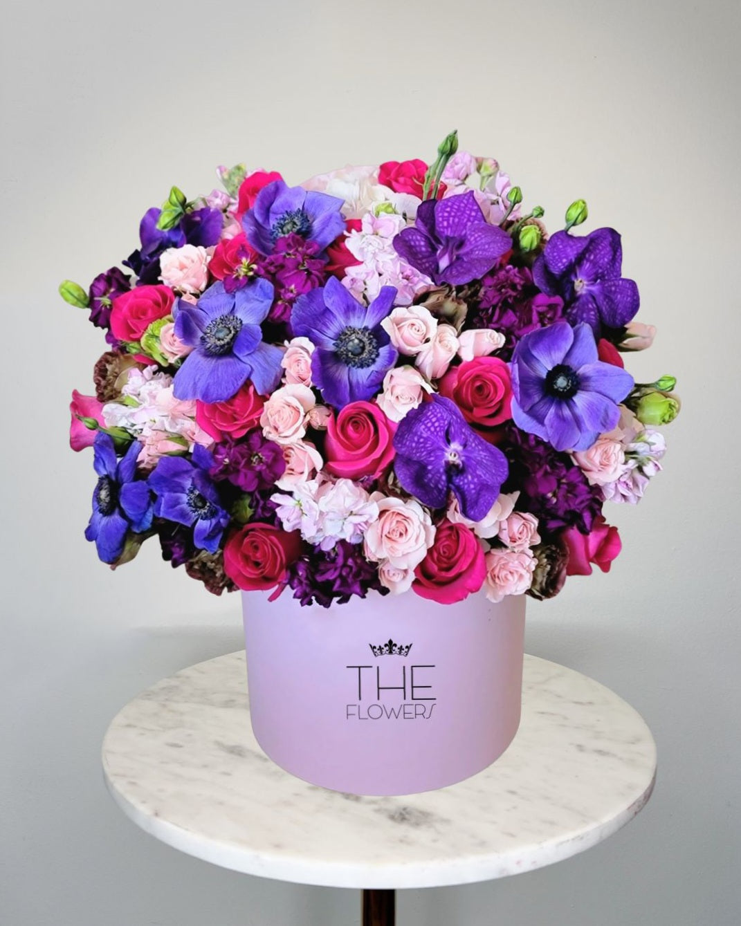 Lavender, pink and deep purple shades of the composition make the author's bouquet universal. It is romantic, light, sensual at the same time. He also expresses gratitude, wishes for success, appreciation for the care and service rendered. Therefore, a bouquet can be presented to a colleague or friend, especially if he is a creative, bright and extraordinary person.